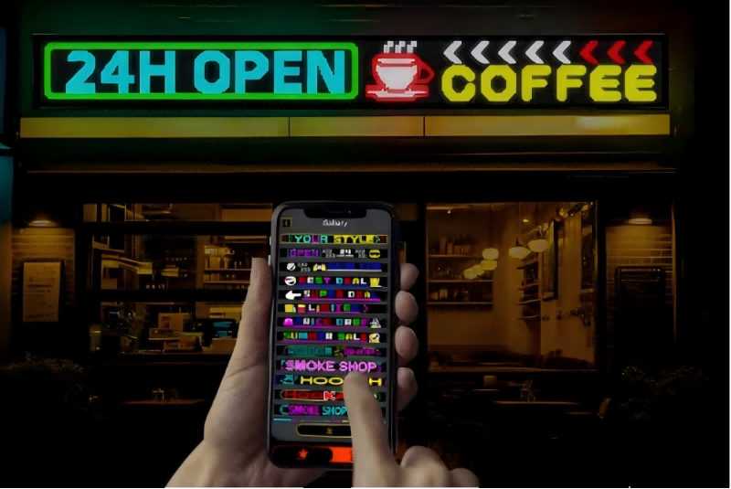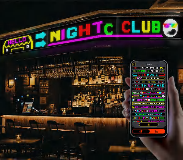 4. Supports Bluetooth-enabled smartphone applications, wireless free control, multipledisplay modes: text, images, animations, DIY, clock, rhythm, etc., selectable static,scrolling or animation effects, supports customizable content library.